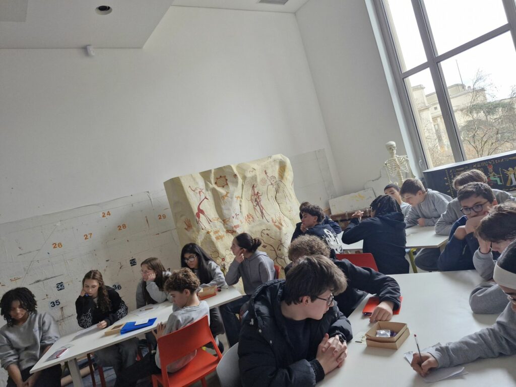 Accompagnés de Mme Ahmim, professeure de SVT, et de leur professeure principale, Mme Sacripanti, les élèves de 3èmes se sont rendus à la Galerie de l’Homme. Cette visite, prolongée par un atelier pédagogique, avait pour objectif d’amener les élèves à réfléchir à la définition de l’espèce humaine et à comprendre à la fois son unité et sa diversité.