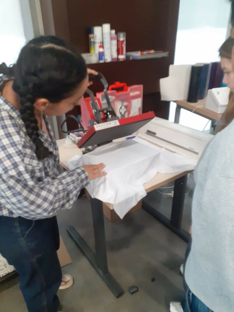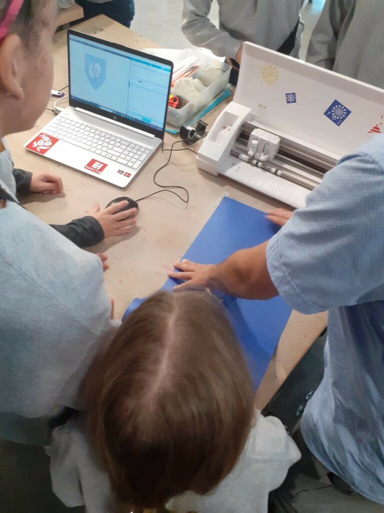 Grâce à la découverte de la technique d’échenillage machine, ils ont ensuite pu réaliser le motif du blason sur des T-shirts personnalisés, qu’ils ont fièrement emportés comme souvenir de cette belle journée.