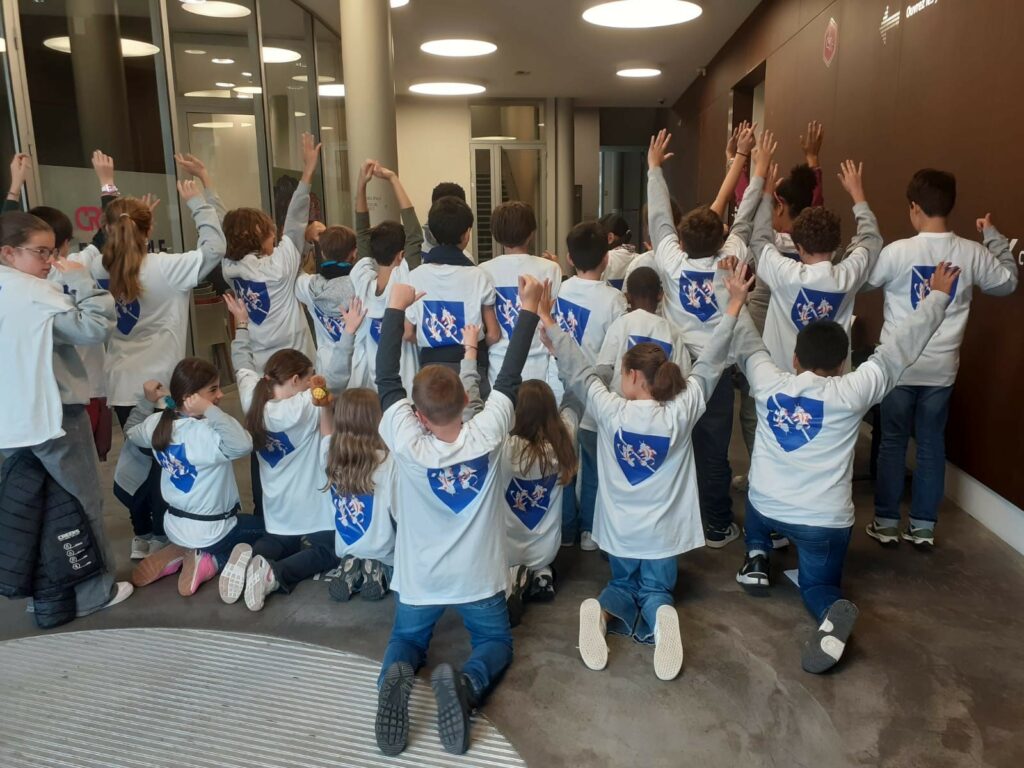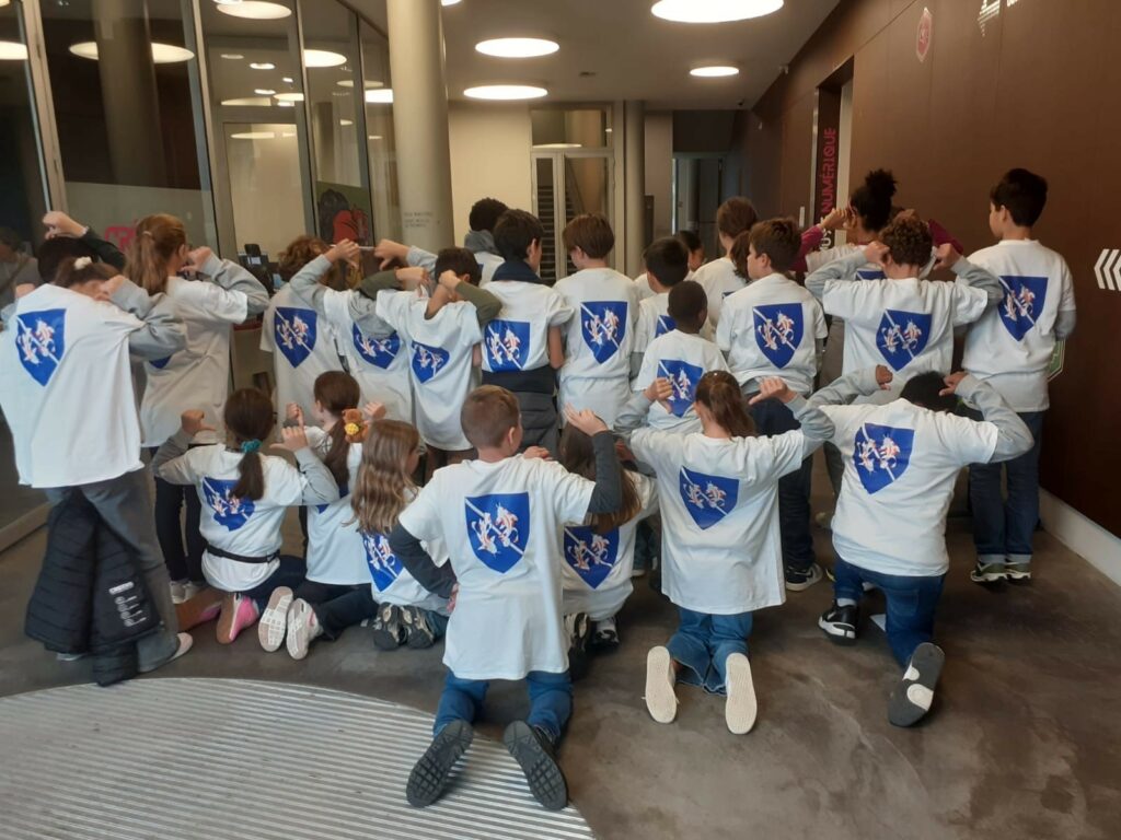 Les élèves ont d’abord imaginé et conçu leur propre blason de classe, symbole de leur unité. Ils ont choisi le poisson comme emblème, un animal qui se déplace en bande — tout comme eux, soudés et solidaires !