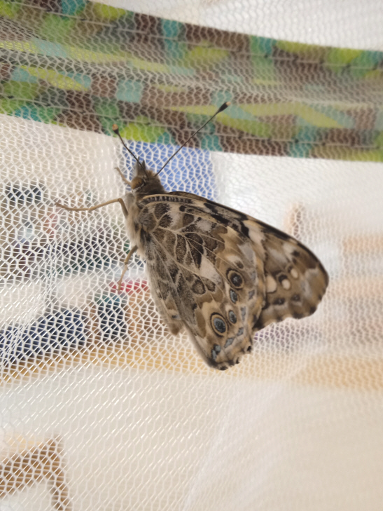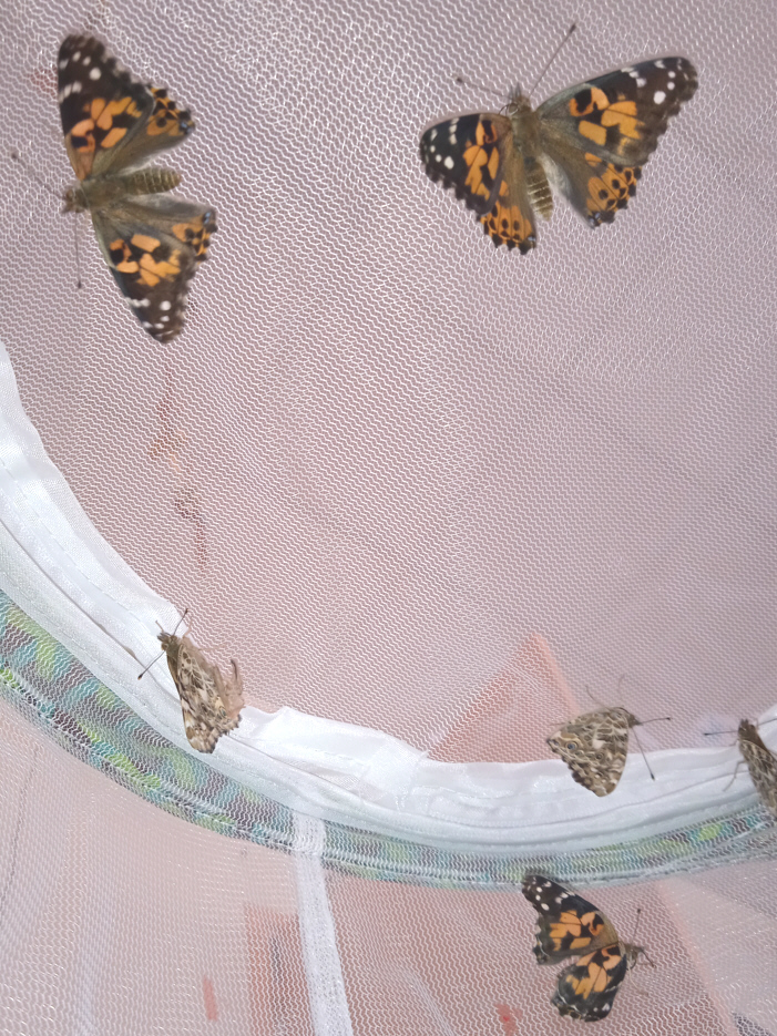Lorsque toutes les chenilles étaient en chrysalide, nous les avons placées dans une volière pour que, à leur sortie, les papillons aient de la place.