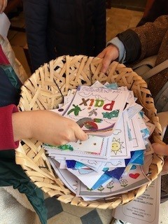 1️⃣ Colorier une carte avec l’inscription “PAIX” 🕊️ Un geste simple mais fort, qui nous rappelle que la paix commence dans nos cœurs et se partage autour de nous.
