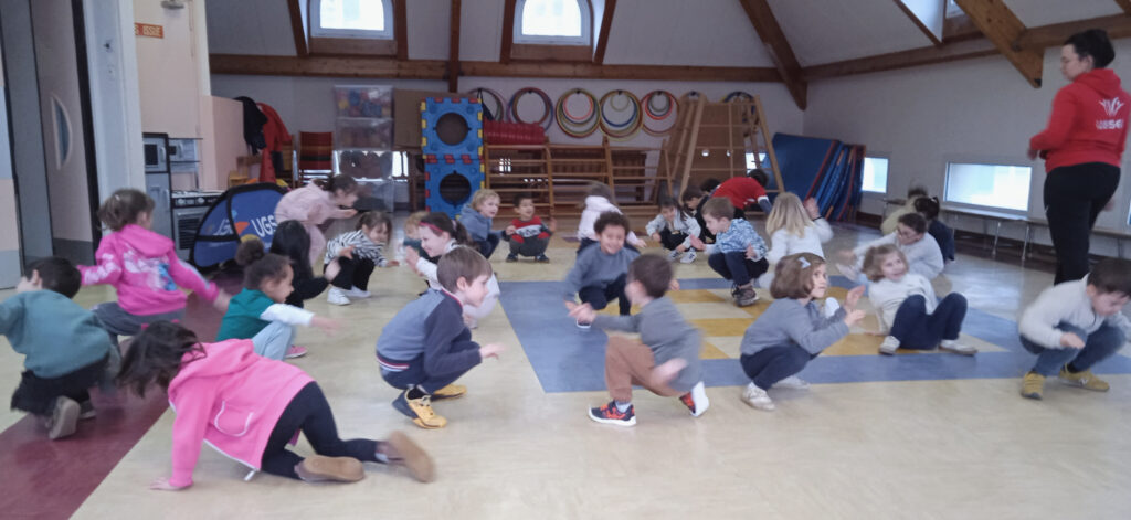 Le 5 février, deux animatrices de l’Ugsel (Clémentine et Elise) sont venues proposer des activités sportives aux élèves de Moyenne et Grande sections.