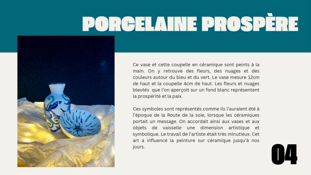 La classe d’histoire des arts de Seconde a mené, sous la conduite de leur professeur, M. Salgado, un fabuleux travail sur la route de la soie. Les œuvres réalisées par les élèves sont exposées au CDI. En attendant votre visite, nous vous laissons découvrir leur démarche et leurs talents.