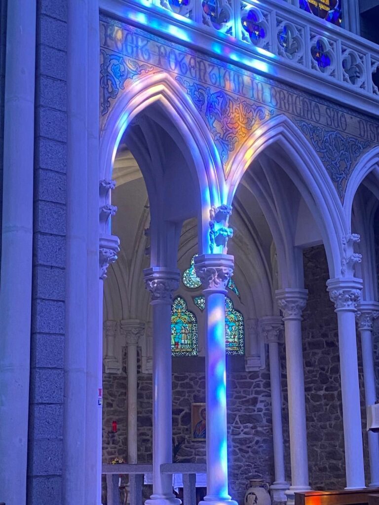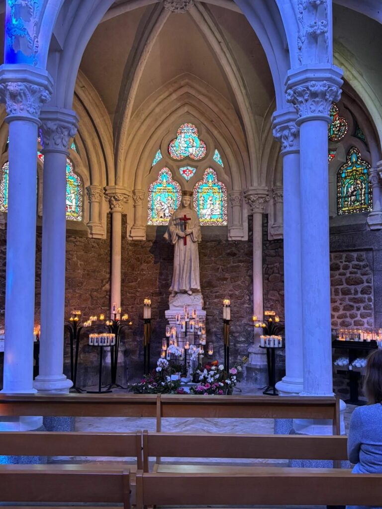 Le soir, nous avons découvert le sanctuaire de Pontmain et ses magnifiques vitraux représentant l’apparition de la Vierge.