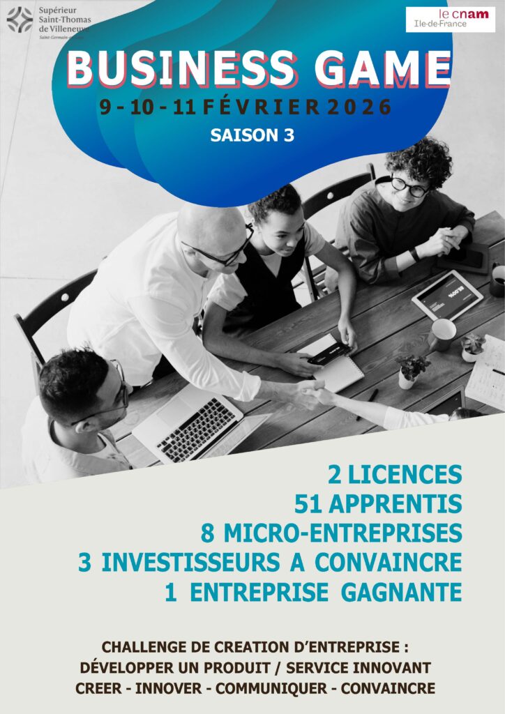 Dans le cadre de leur formation, les apprentis des licences GO (Gestion des Organisations) et CVM (Commerce, Vente et Marketing) participeront les 9, 10 et 11 février 2026 à un Business Game, une simulation immersive leur permettant de se confronter aux réalités du monde de l’entreprise.